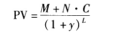 式中,PV表示的是債券全價(jià);C表示債券票面年利息;N表示債券償還期限;M表示債券面值;L表示債券的剩余流通期限(年),y表示投資者自己確定的收益率,或市場平均投資收益率。