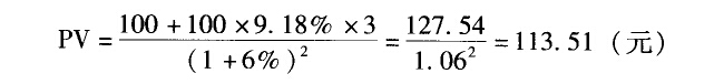 例如:1997午5月1口發(fā)行一只3年期,票面利率為9.18%的到期一次還本付息債,1998年5月1口,該債券還有2年到期,當(dāng)時(shí)市場價(jià)格為l12.6元,有一個(gè)投資者希望收益率不要低于6%,那么該投資者是否府買入該債券?