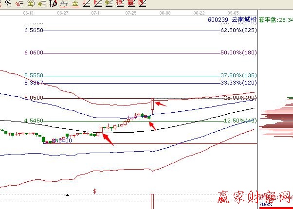 江恩價格百分比4.54元的支撐就要向下尋找支撐點了。加上地震的突發(fā),炒作,量能的放出,該股漲停是在合理之中的。不出意外,明天還會表現(xiàn)。